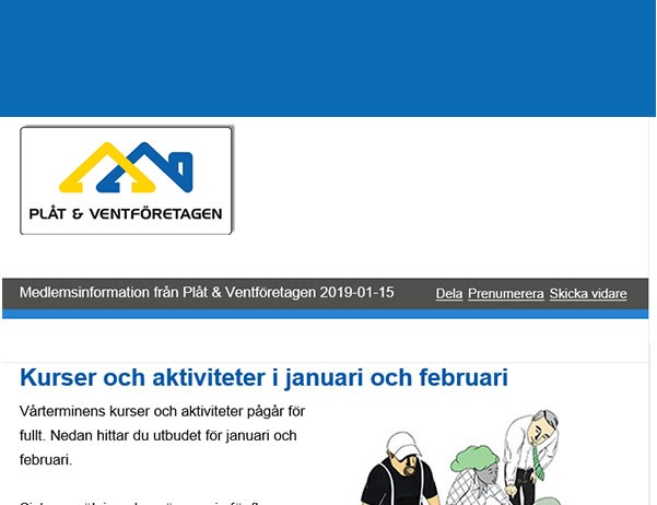 Plåt & Ventföretagen är bransch- och arbetsgivarorganisationen för alla plåt- och ventilationsföretag som i dag samlar omkring 1 000 medlemsföretag.